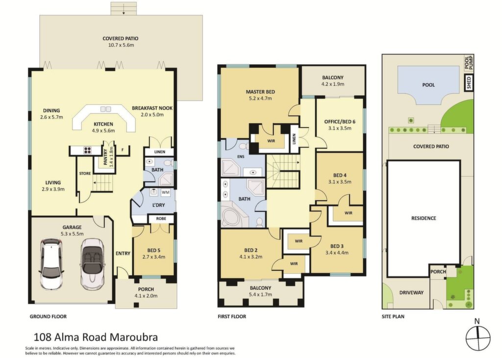 Six generous bedrooms, five with walk-ins/built-in robes, master with ensuite Versatile 6th bedroom, ideal as a guest room or home office Main bathroom with spa bath and separate shower Expansive living and dining areas filled with natural light Spacious modern kitchen with gas cooktop, breakfast bar & dishwasher Undercover entertaining area overlooking the swimming pool North-facing backyard capturing all-day sunshine Double lock-up garage plus additional off-street parking Ducted air conditioning, solar panels providing energy efficiency Highly sought-after setting close to Maroubra and Coogee beaches, local parks, schools, shops, and transport