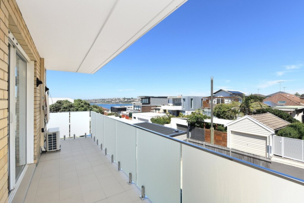 Oversized 107sqm apartment 2 large sized bedrooms with water views and built in's Lime washed Oak parquet flooring Carpeted in both bedrooms Spacious open plan living and dining Sun drenched kitchen including dishwasher and smeg cooktop Custom joinery and integrated seating in dining room Full length renovated terrace bathed in sunlight Reverse cycle air & timber ceiling fans Internal laundry and custom lighting Approx 29sqm lock up garage with storage Coastal walk to Bondi and recreational parkland at your doorstep Stroll to beaches, cafes and eateries