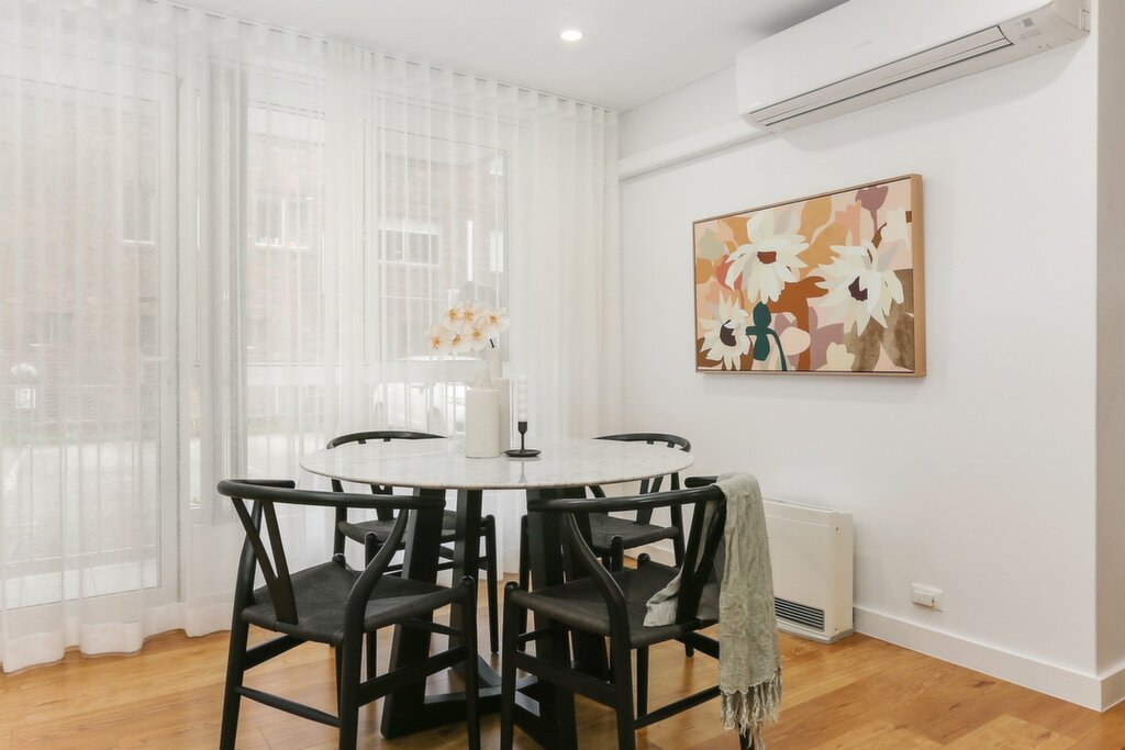 Spacious open plan living and dining area filled with natural sunlight Sleek modern kitchen with quality stainless steel appliances and ample cupboard space Two generous bedrooms, both with built-in wardrobes Contemporary bathroom with internal laundry facilities Reverse-cycle air conditioning for year-round comfort Polished timber flooring throughout adds warmth and elegance- East-facing balcony perfect for your morning coffee in the sunshine Secure building with allocated car space