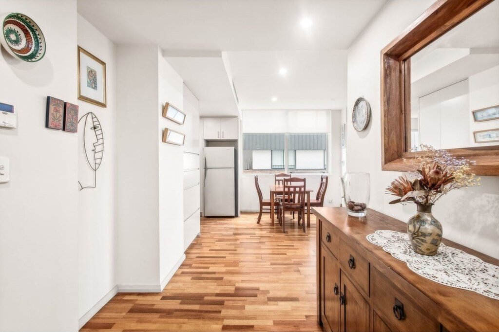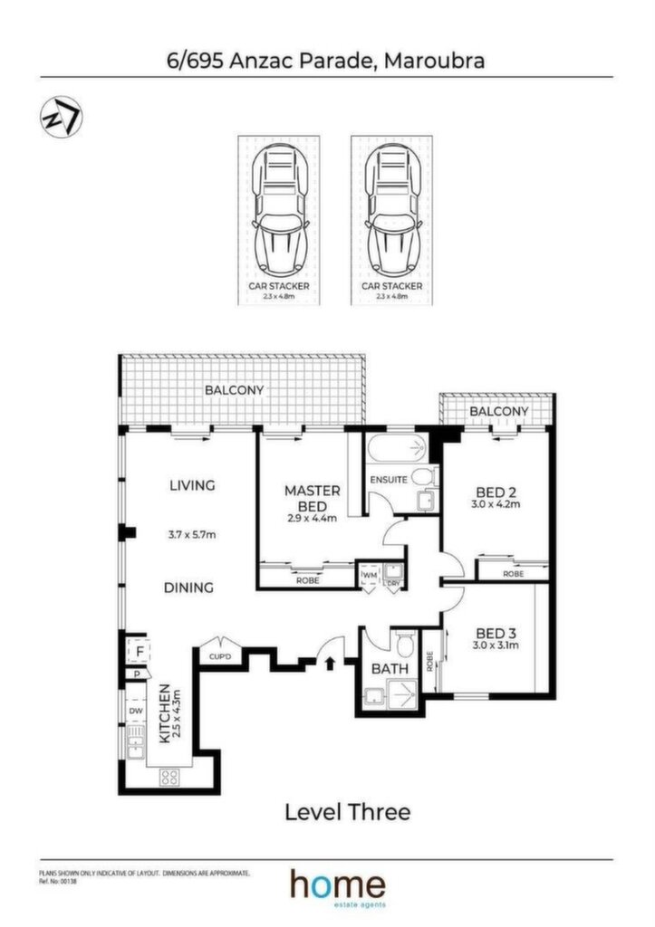 Freshly painted throughout. Brand new carpet throughout. Three spacious bedrooms with built-in wardrobes; main bedroom features an ensuite with a bathtub. Expansive open-plan living area leading to a sunlit balcony. Modern gas kitchen with Smeg appliances and grey stone benchtops. Sleek bathroom and a concealed internal laundry. Ducted air conditioning throughout. Stacked parking for two vehicles. Short level walk to all amenities and transport. Total title size (approx.): 119sqm internal and 14sqm Car space.