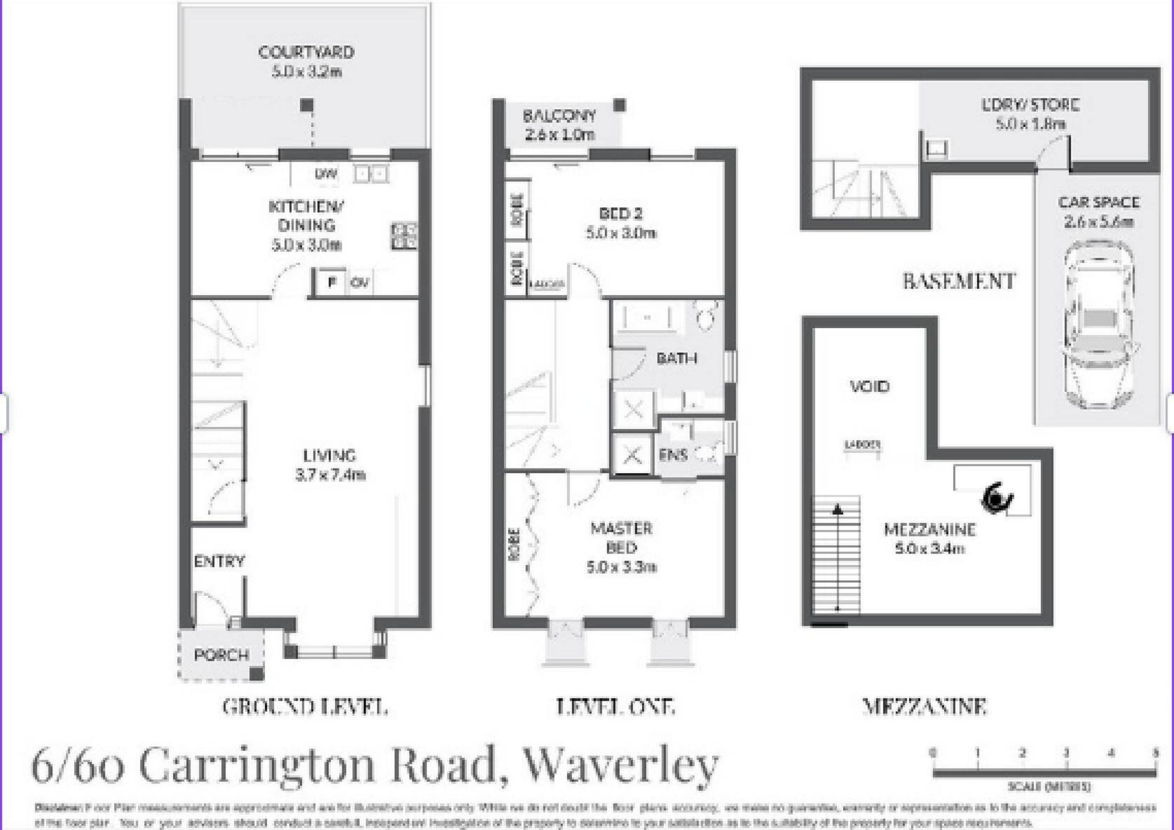 Terrace style townhouse with sunny private courtyard Spacious living/dining areas with bay window and garden vista Well-kept kitchen with stainless steel appliances and gas cooktop Casual dining area opens to leafy courtyard Main king size bedroom with built-in robes and ensuite Second king size bedroom with sunny balcony & built-ins Mezzanine style study/potential 3rd bedroom 2 modern bathrooms, main with separate bath and shower Large basement laundry with sink and huge storage area Internal access to parking space in secure parking area Boutique Redara Palms complex of 16 townhouses Manicured common gardens, 4 visitor parking spaces Walk to Charing Cross Village and Bondi Junction Westfield Footsteps to schools, parks, shops and local beaches Family-friendly property