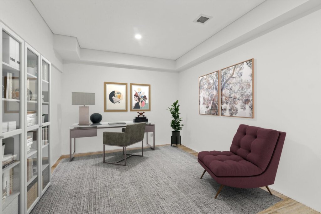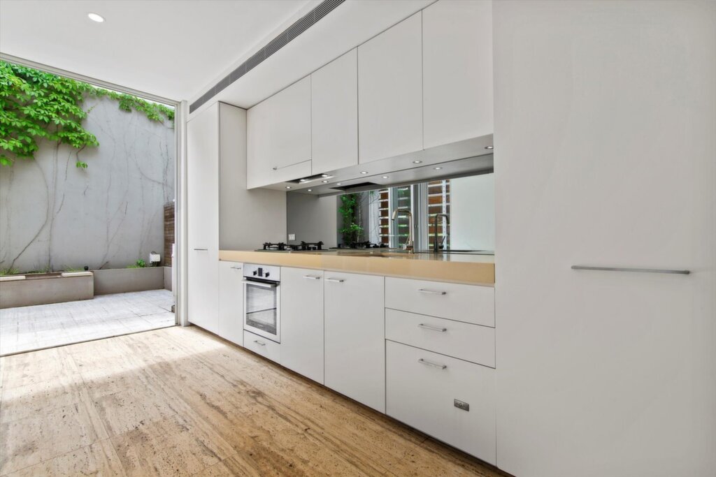 Open-plan living/dining opening to private terrace Two queen-size bedrooms with built-ins (one with balcony) Lower-level home office/gym Modern gas Caesarstone kitchen with dishwasher Concealed European-style laundry and ample storage TV intercom and ducted air conditioning Courtyard with vertical gardens and seating Secure internal access with parking Private development of only nine residences Minutes to the CBD, Sydney University, and UTS