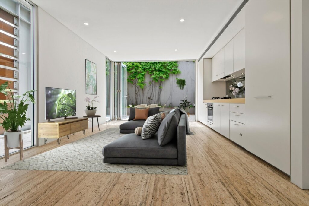Nestled in lush, landscaped gardens in the heart of Glebe/Forest Lodge, this stunning three-level, two-bedroom town home blends contemporary design with practical living. With only one shared wall, it's perfect for families or professionals seeking space and style.